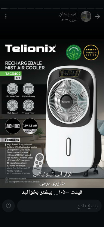 پنکه مه پاش تلیونیکس مدل3402 شارژی
